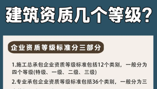 想知道一家建筑工程公司的實(shí)力如何,最為直觀的方式就是查看其資質(zhì)證書等級,建筑工程資質(zhì)可以劃分為特級、一級、二級和三級......